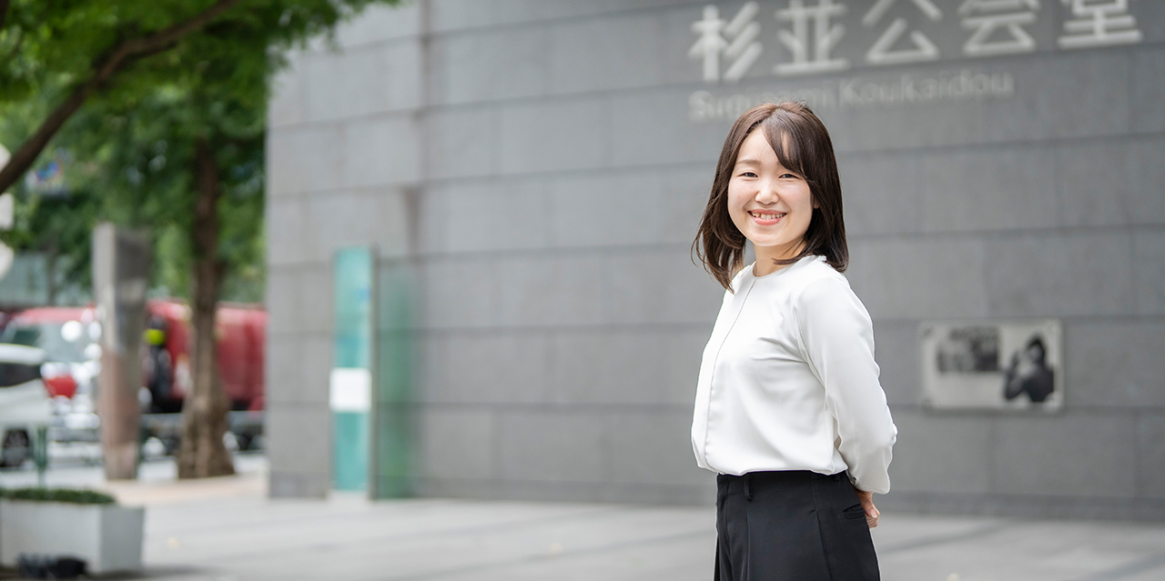 私が所属する杉並公会堂事業部は、杉並公会堂とココブンジプラザという2つの公共施設の維持・運営管理を行っています。杉並公会堂は、日本有数の音響効果を誇る文化拠点であり、クラッシックコンサートをはじめ講演や地域行事などに利用されています。当社が管理する物件の中でも特色のある施設ですね。私が担当する管理担当の業務は、会計・労務管理を中心とした事務管理で、施設運営管理を行う部署を裏方としてサポートしています。